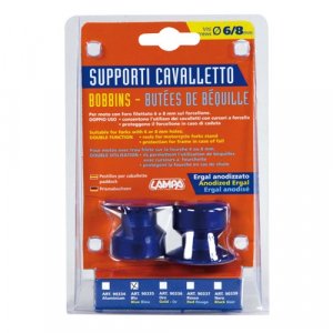 Per moto con foro filettato sul forcellone. Doppio uso: consentono l’utilizzo dei cavalletti con cursori a forcella e proteggono il forcellone in caso di caduta